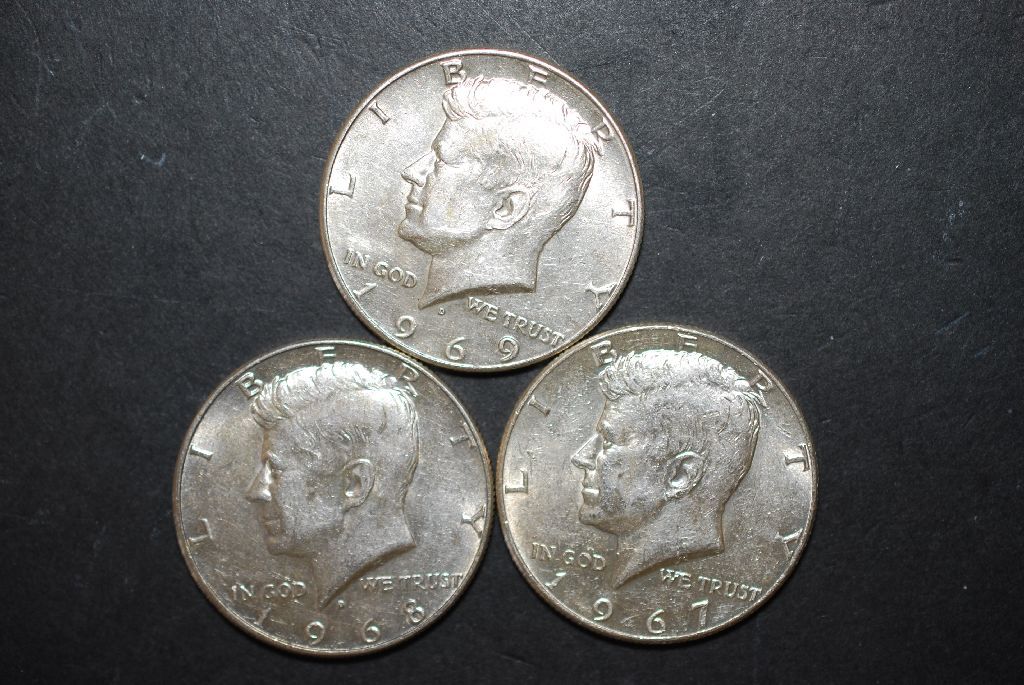 1967-1969 US Kennedy Half Dollar; Various Conditions; Lot of 3 Consecutive Years; EST. $20-30