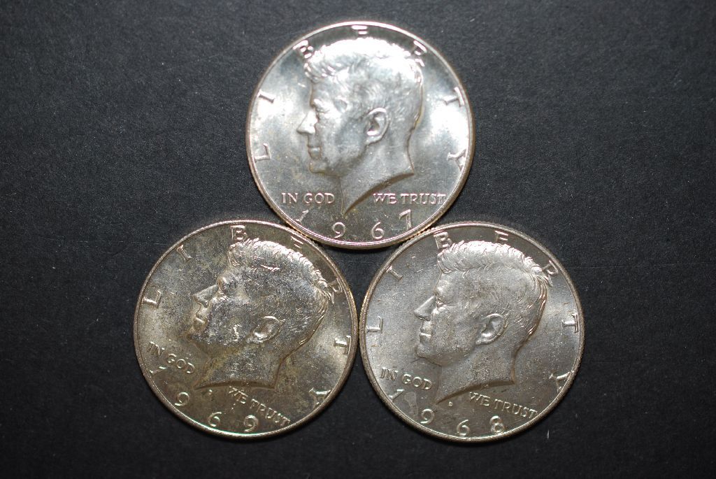 1967-1969 US Kennedy Half Dollar; Various Conditions; Lot of 3 Consecutive Years; EST. $20-30