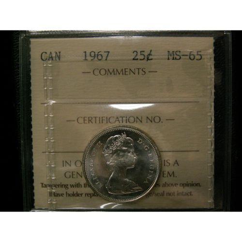 1967 25¢ ICCS MS-65 Brilliant. Excellent strike with clean fields.