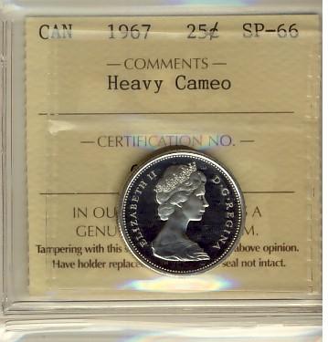 1967 25¢ ICCS SP66 Heavy Cameo