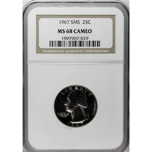 1967 25C SMS MS68 Cameo NGC. This immaculate example p