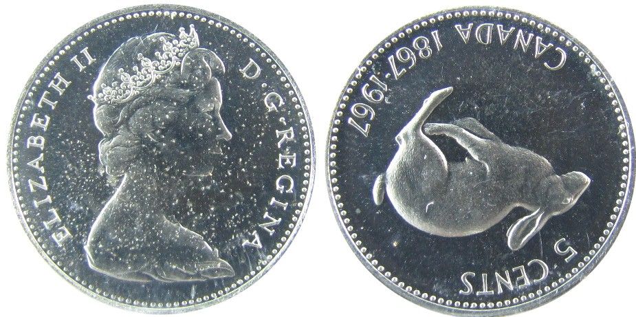1967 5¢ Coinage ICCS MS62. The only example graded by ICCS Mintstate Coinage type. Well struck with good lustre. First example seen by the cataloguer. Highest of rarity. Expect strong bidding on this one.