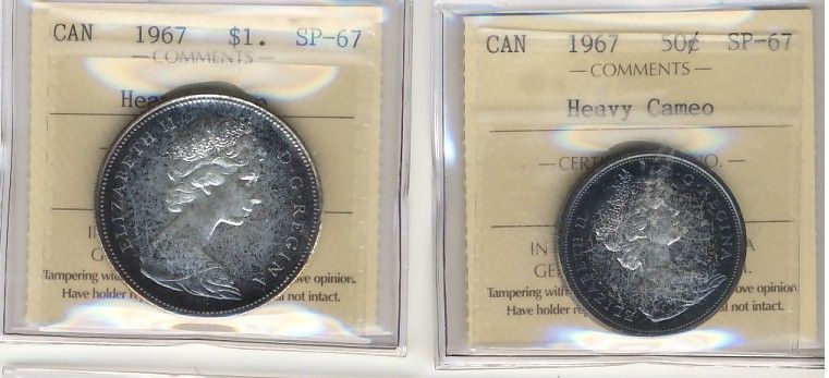 1967 50¢ & $1 both ICCS SP67 Heavy Cameo. Lot of 2 coins.