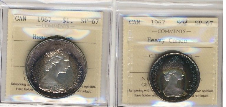 1967 50¢ & $1 both ICCS SP67 Heavy Cameo. Lot of 2 coins.