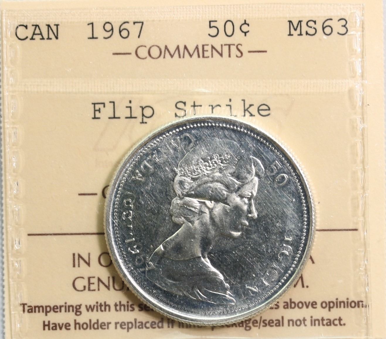 1967 50¢ "Flip Strike" ICCS Choice Mint State-63. Fully brilliant and lustrous.
