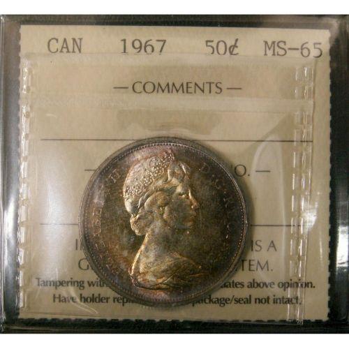 1967 50¢ ICCS MS-65, nicely toned. Scarce in this designation