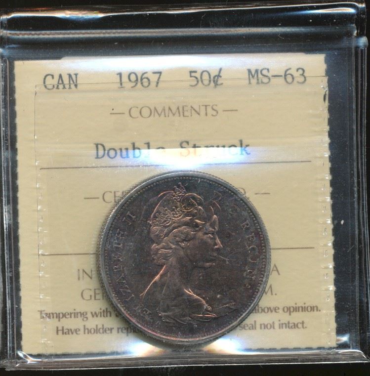 1967 50¢ ICCS MS63. Dbl Struck issue with golden pink tones.