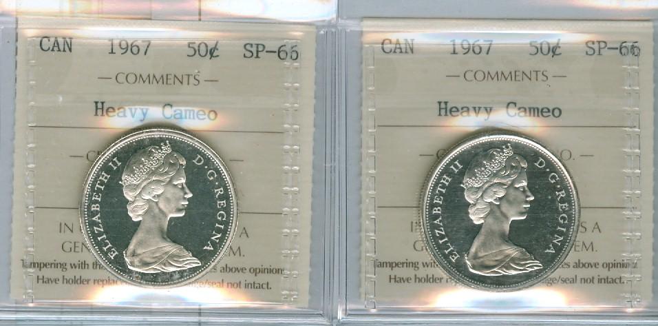 1967 50¢ ICCS SP66 Heavy Cameo. Lot of 2 coins.
