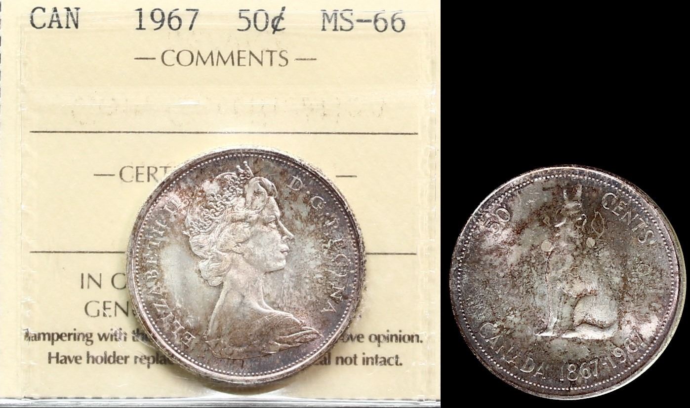1967 50¢ ICCS Superb Gem Mint State-66 Delicate russet tone over full underlying lustre.