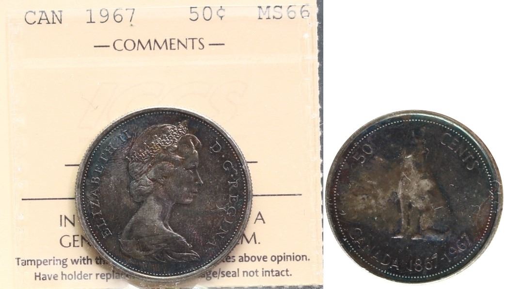 1967 50¢ ICCS Superb Gem Mint State-66. Superbly toned.