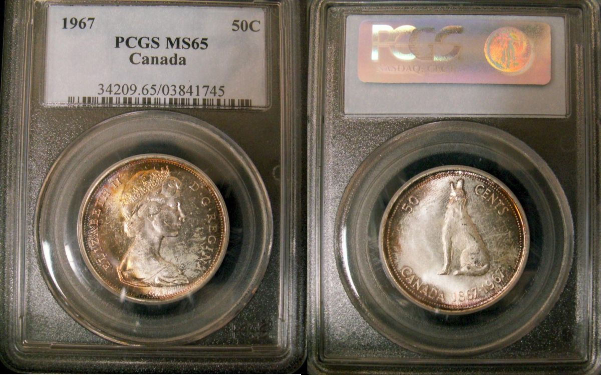1967 50¢ PCGS MS65 Superbly toned. Excellent strike with clean fields and lovely surfaces.