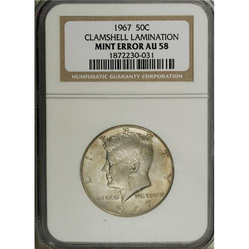<B>1967 50C Half Dollar--Clamshell Lamination--AU58 NGC.</B></I><BR><BR><b>Shipping:</b> Coins & Currency (<a target="_blank" href="http://www.heritageauctions.com/common/shipping.php">view shipping information</a>)