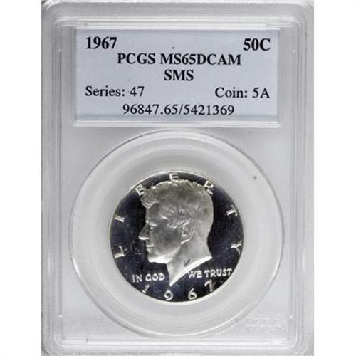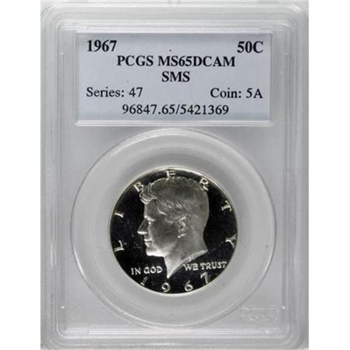 <B>1967 50C SMS MS65 Deep Cameo PCGS.</B></I> PCGS Population (9/111). NGC Census: (18/127). (#96847)<BR><BR><b>Shipping:</b> Coin/Currency (<a target="_blank" href="http://www.heritageauctions.com/common/shipping.php">view shipping information</a>)