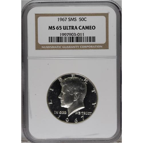 1967 50C SMS MS65 Deep Cameo NGC; 1967 SMS MS67 Cameo