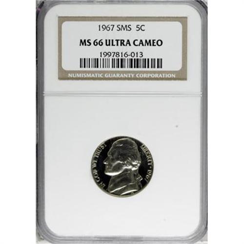 <B>1967 5C SMS MS66 Deep Cameo NGC.</B></I> NGC Census: (60/157). PCGS Population (194/132). (#84199)<BR><BR><b>Shipping:</b> Coin/Currency (<a target="_blank" href="http://www.heritageauctions.com/common/shipping.php">view shipping information</a>\)