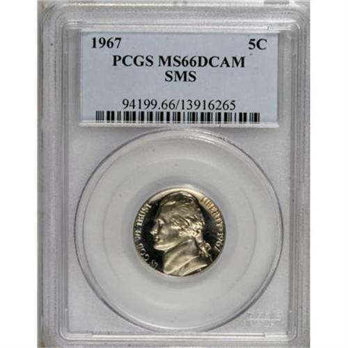 <B>1967 5C SMS MS66 Deep Cameo PCGS.</B></I> PCGS Population (35/25). NGC Census: (0/0). (#94199)<BR><BR><b>Shipping:</b> Coins & Currency (<a target="_blank" href="http://www.heritageauctions.com/common/shipping.php">view shipping information</a>)