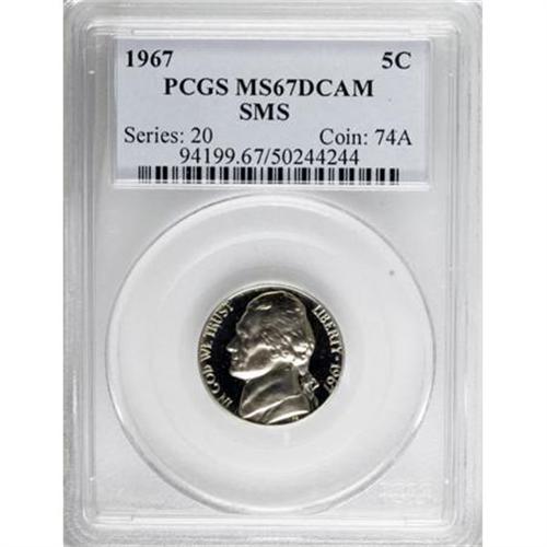 <B>1967 5C SMS MS67 Deep Cameo PCGS.</B></I> PCGS Population (24/1). NGC Census: (0/0). (#94199)<BR><BR><b>Shipping:</b> Coins & Currency (<a target="_blank" href="http://www.heritageauctions.com/common/shipping.php">view shipping information</a>)