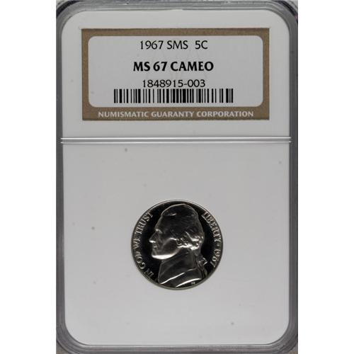 <B>1967 5C SMS MS67 Cameo NGC.</B></I> NGC Census: (120/37). PCGS Population (128/4). (#84199)<BR><BR><b>Shipping:</b> Coins & Currency (<a target="_blank" href="http://www.heritageauctions.com/common/shipping.php">view shipping information</a>)