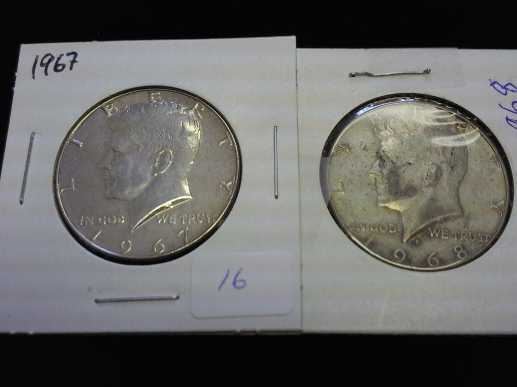 1967 & 68 40% SILVER KENNEDY HALF DOLLARS