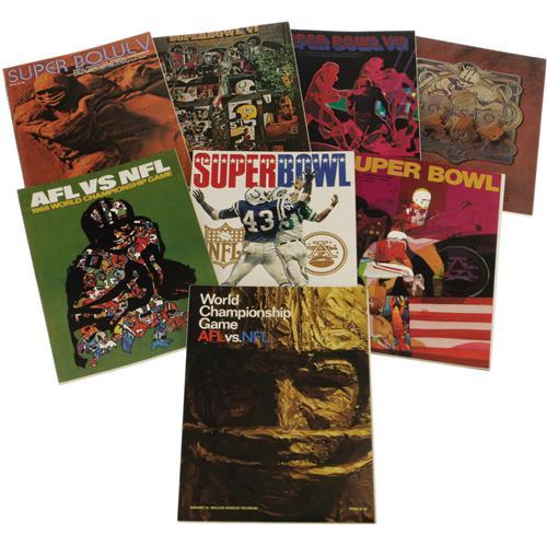<B>1967-95 Super Bowl Programs Complete Run of 29.</B></I> High-grade run captures the history of each and every Big Game from the very first edition through Super Bowl XXIX. Not a single specimen dips below EX-MT condition, and the average could easily be characterized as NRMT. It will be no difficulty at all to add the missing modern examples to complete the run in its entirety. All of the fun of a top quality Super Bowl program collection without all the work. A great lot for dealers too.<BR><BR><b>Shipping:</b> Flat Material, Large (<a target="_blank" href="http://www.heritageauctions.com/common/shipping.php">view shipping information</a>)