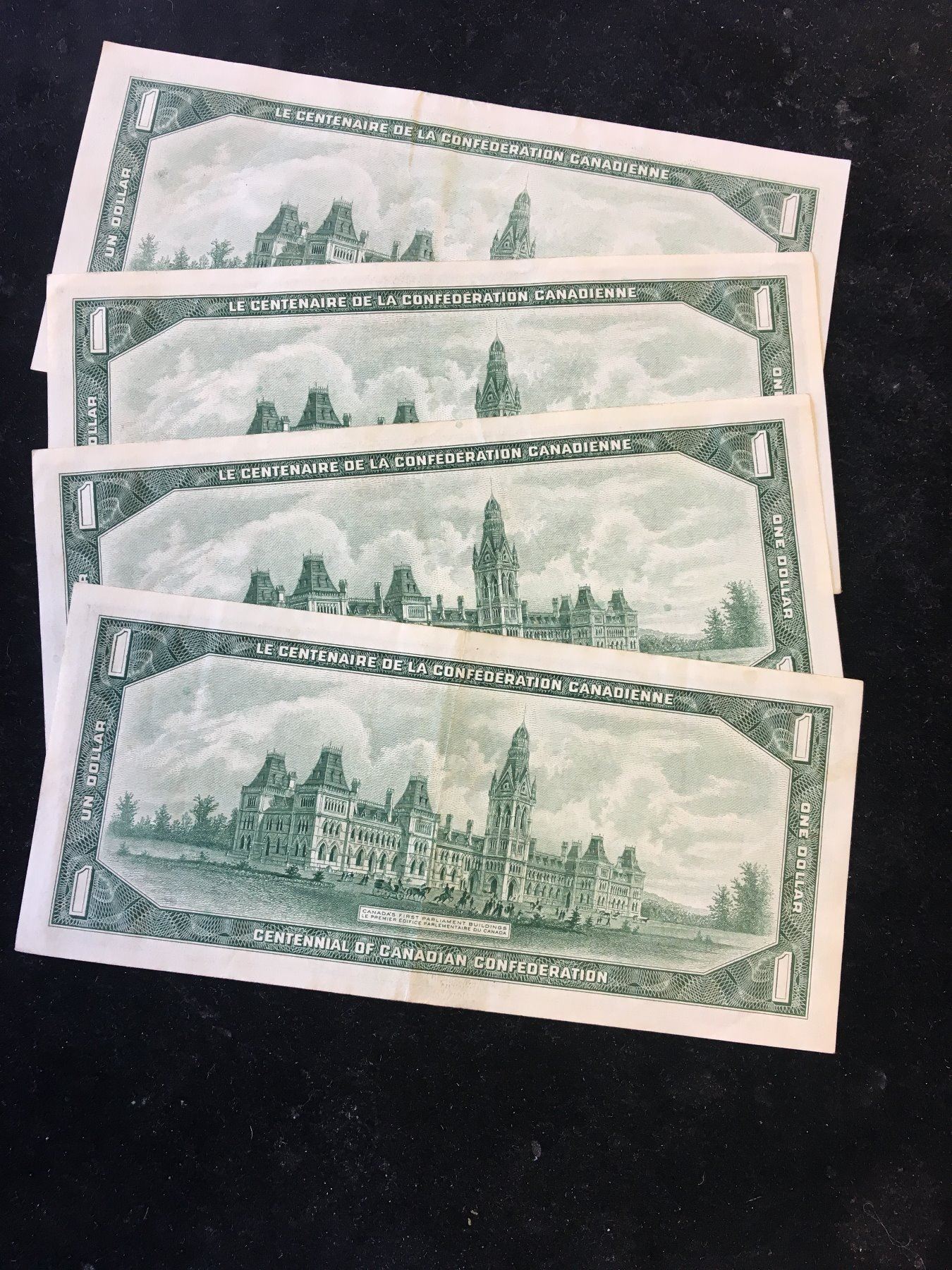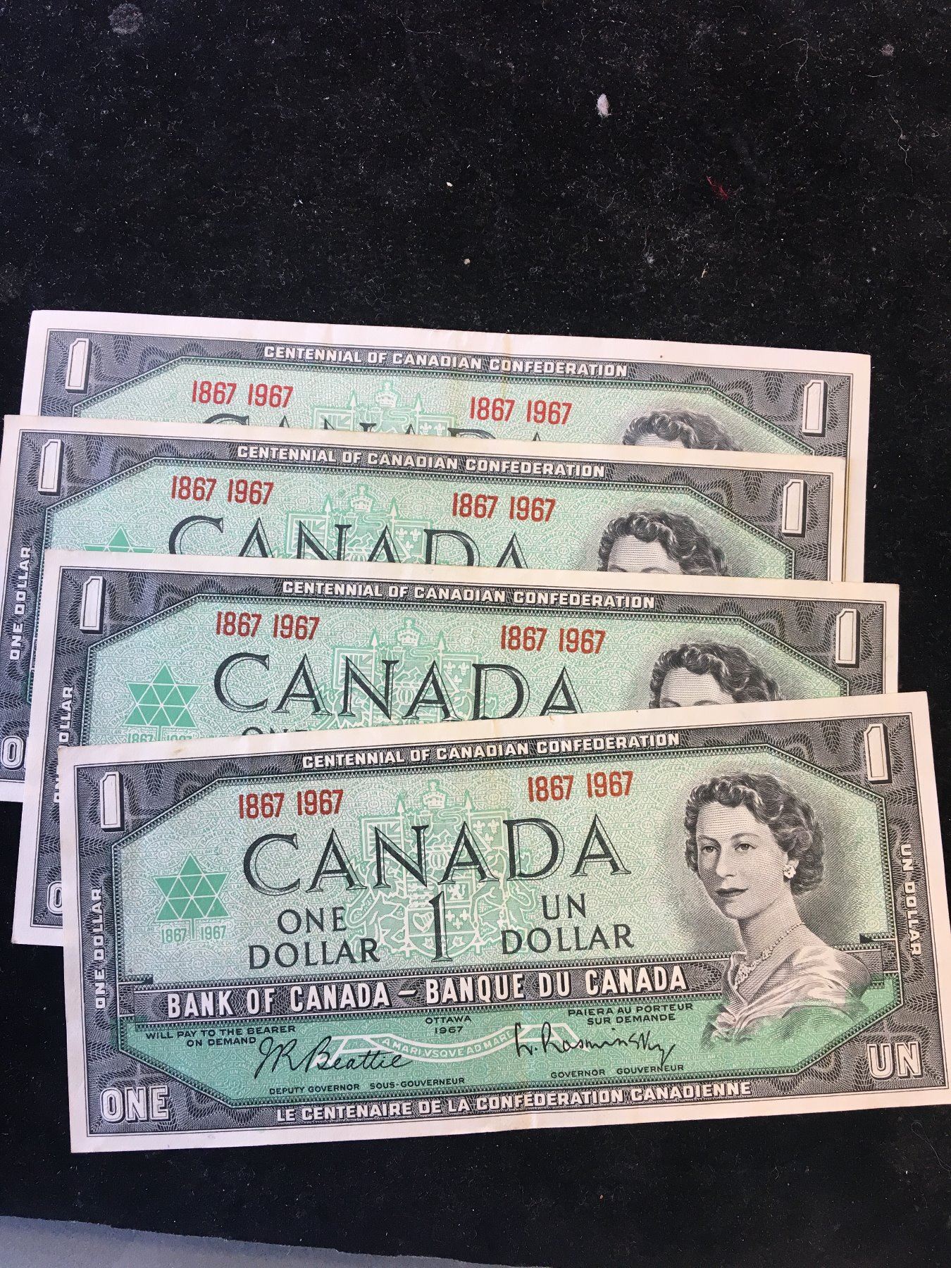 NICE LOT OF 4 1967 BANK OF CANADA $1 NOTES