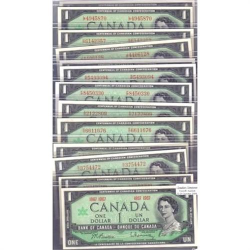 1967 One Dollar, BC-45a. Plus 1967 One Dollar, BC-45b Prefixes L/O, M/O, N/O, O/O, R/O and S/O. Plus 1967 One Dollar, BC-45b-i Prefixes F/P, G/P, H/P, J/P, K/L, L/P and M/P. Total fourteen notes, all Uncirculated