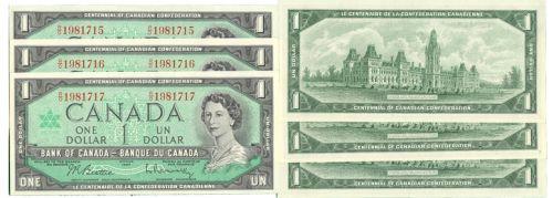 0830 - 1967 Bank of Canada $1's Consecutive - Unc
