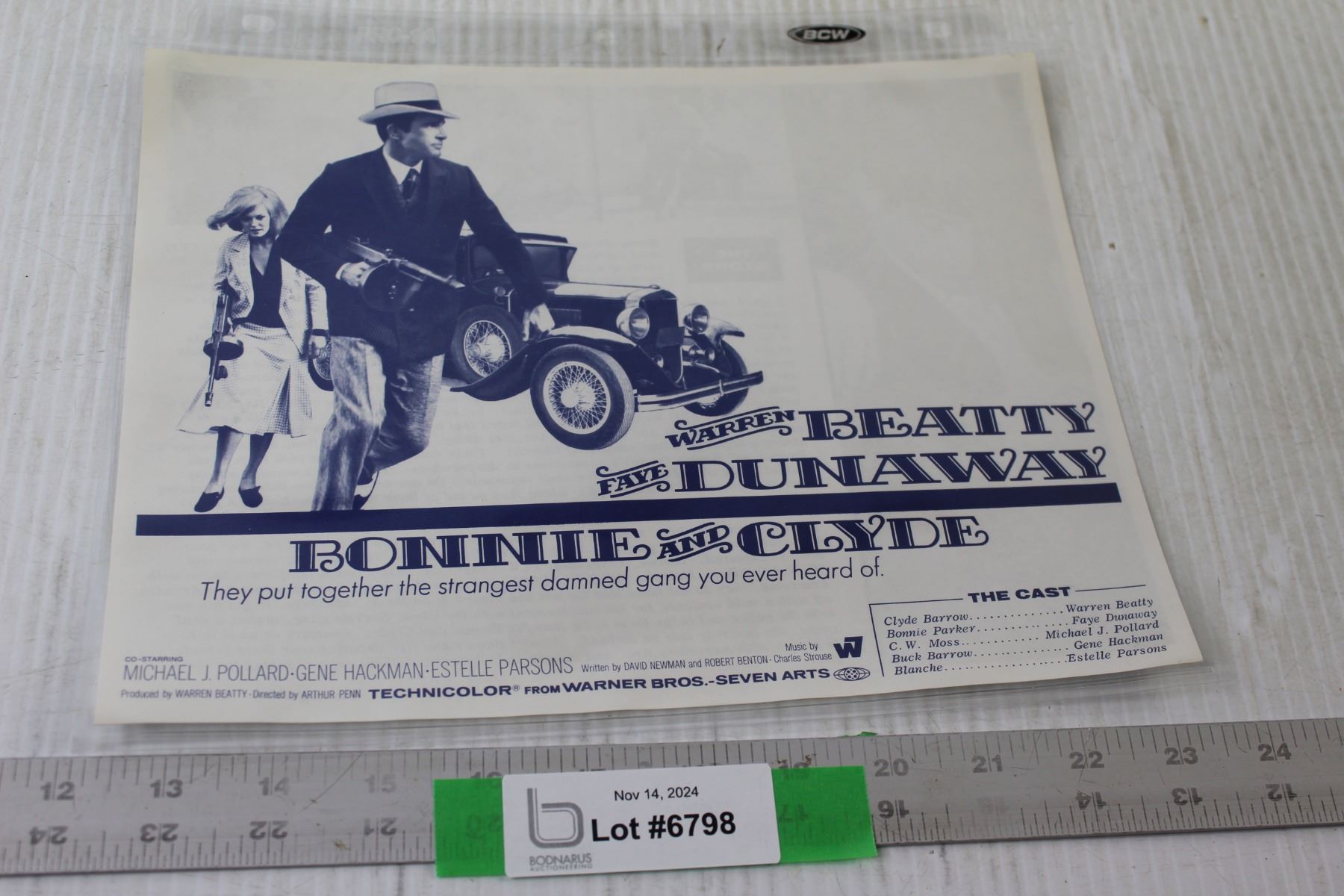 1967 "Bonnie and Clyde" Movie Synopsis Sheet - 8 1/2" x 11" Consigner Says Mint Condition