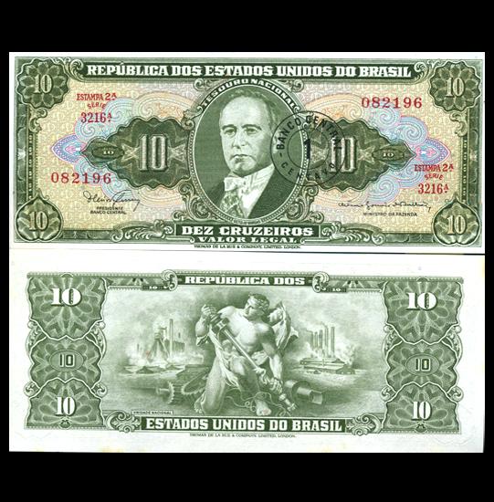 1967 Brazil 10 Cruzeiro Overpring Crisp Uncirculated Note (CUR-05921)