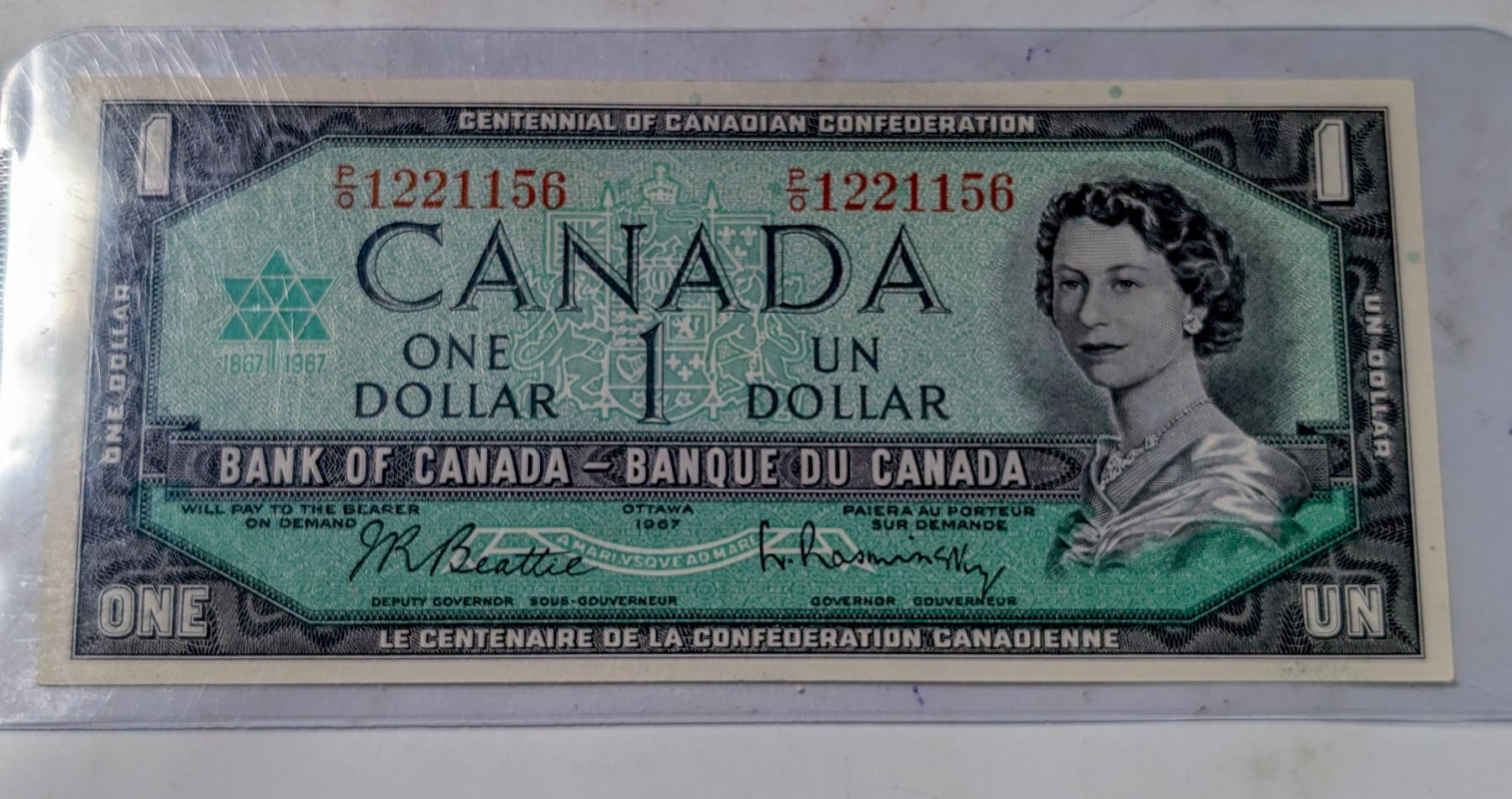 1967 CANADA $1 BANKNOTE. UNCIRCULATED.