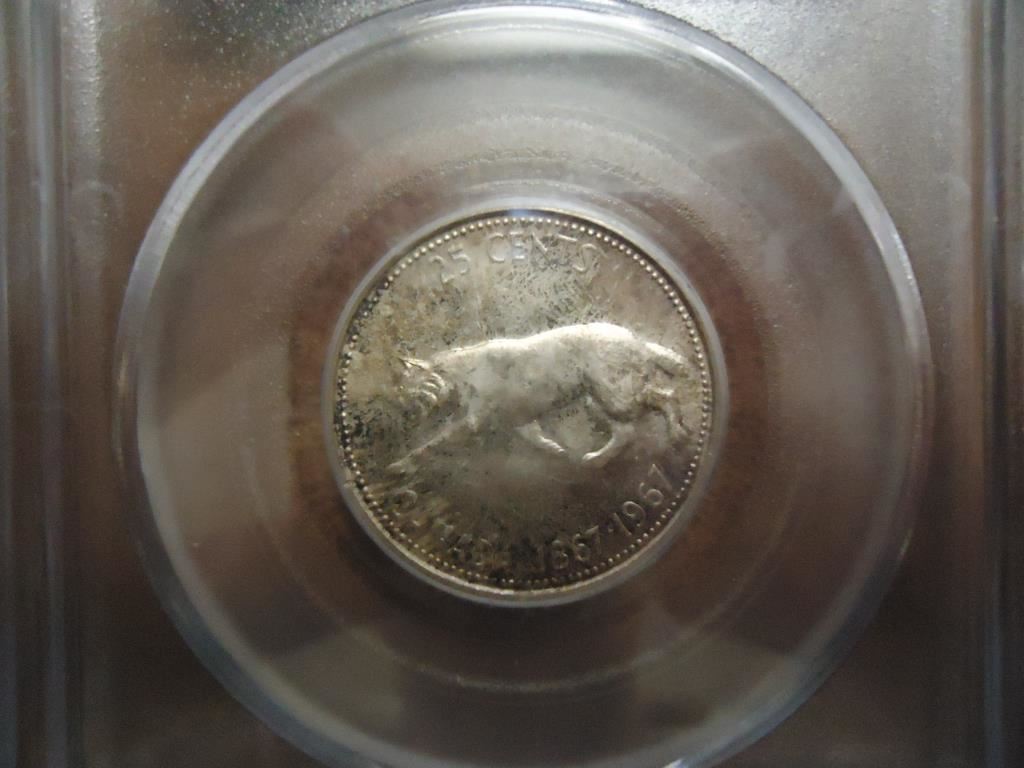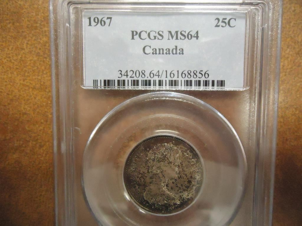 1967 CANADA SILVER 25 CENT PCGS MS64 TONED