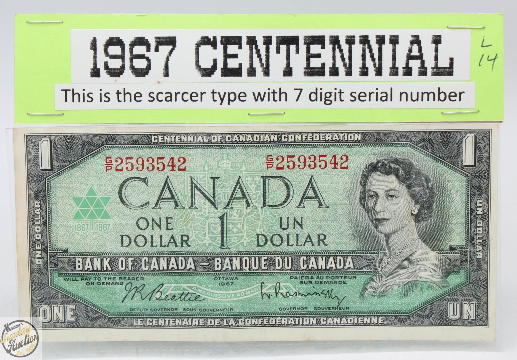 1967 CANADIAN 1.00 BILL NOT CENTENNIAL