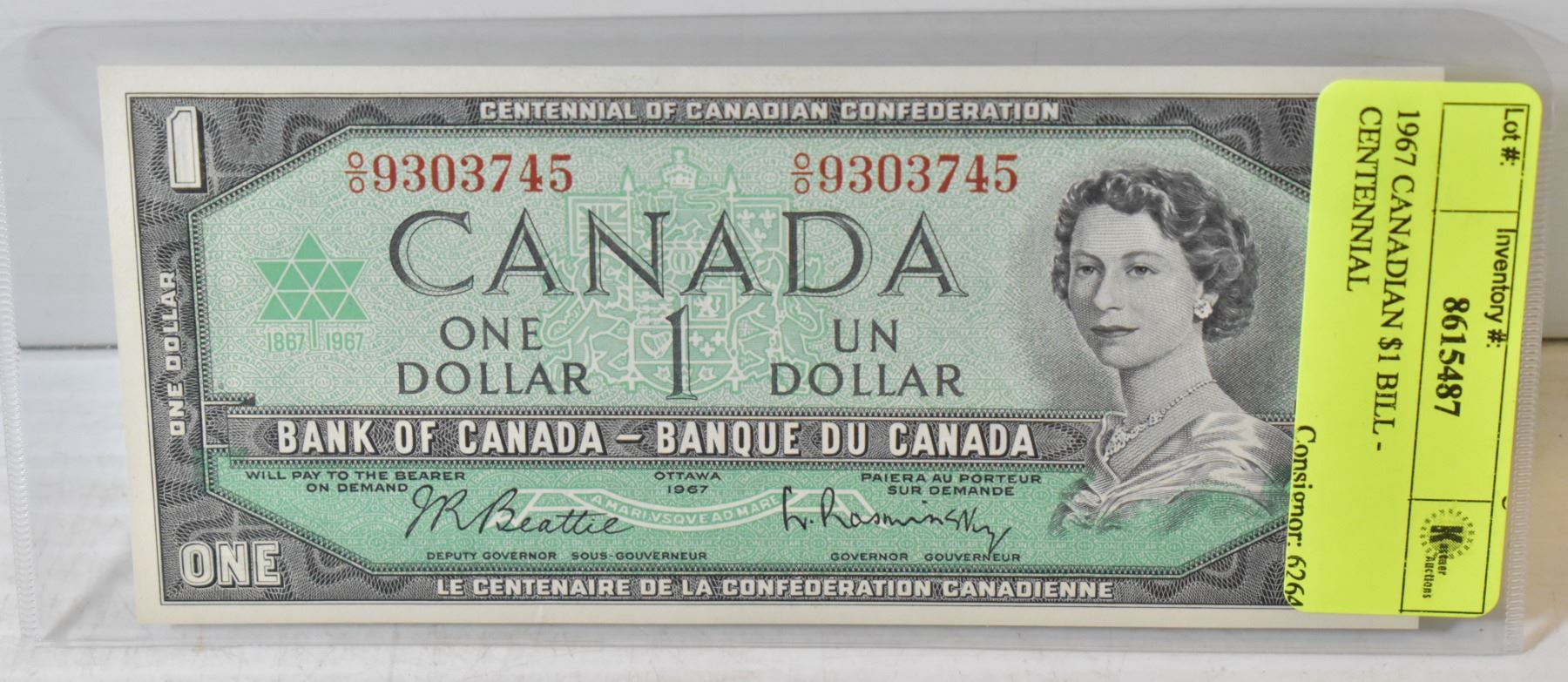 1967 CANADIAN $1 BILL - CENTENNIAL