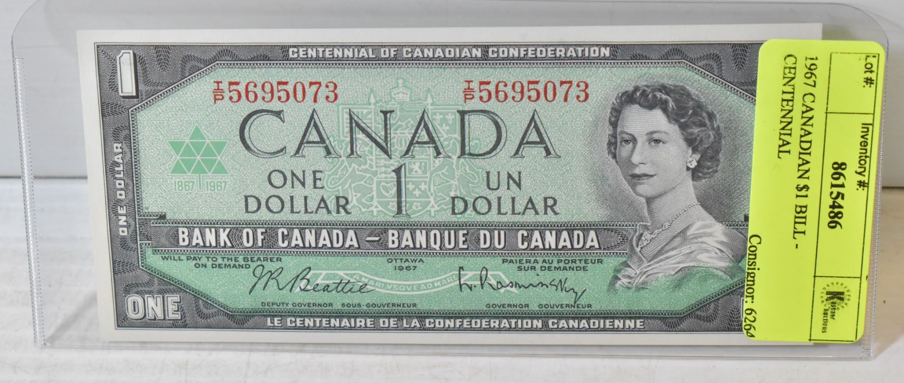 1967 CANADIAN $1 BILL - CENTENNIAL