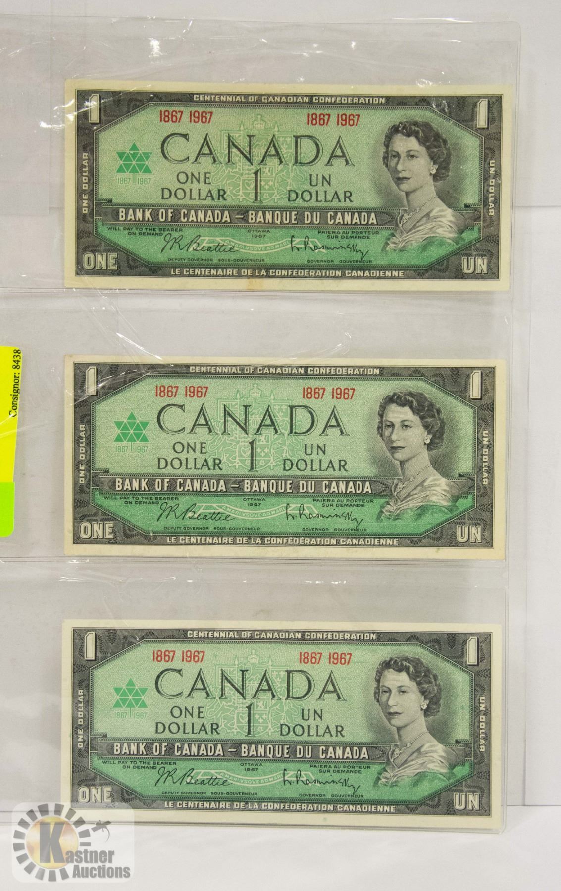 1967 CANADIAN $1 BILLS- SET OF 3- NO SERIAL #'S