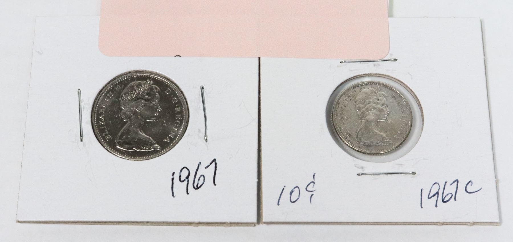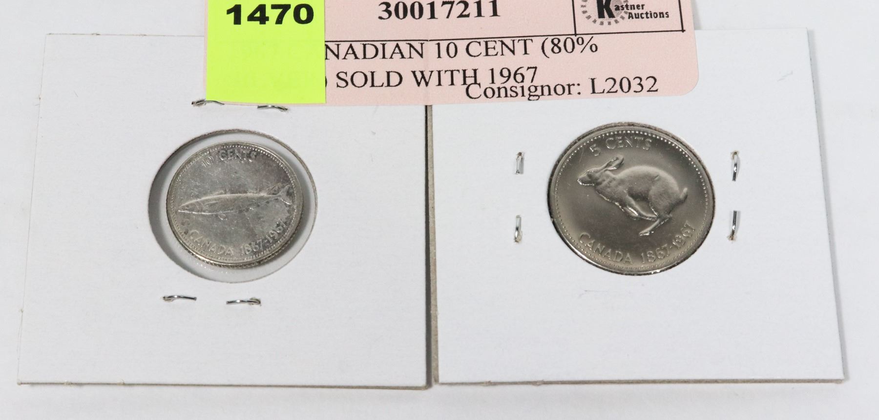 1967 CANADIAN 10 CENT (80% SILVER) SOLD WITH 1967