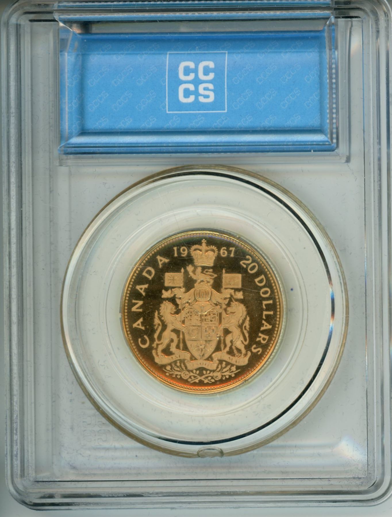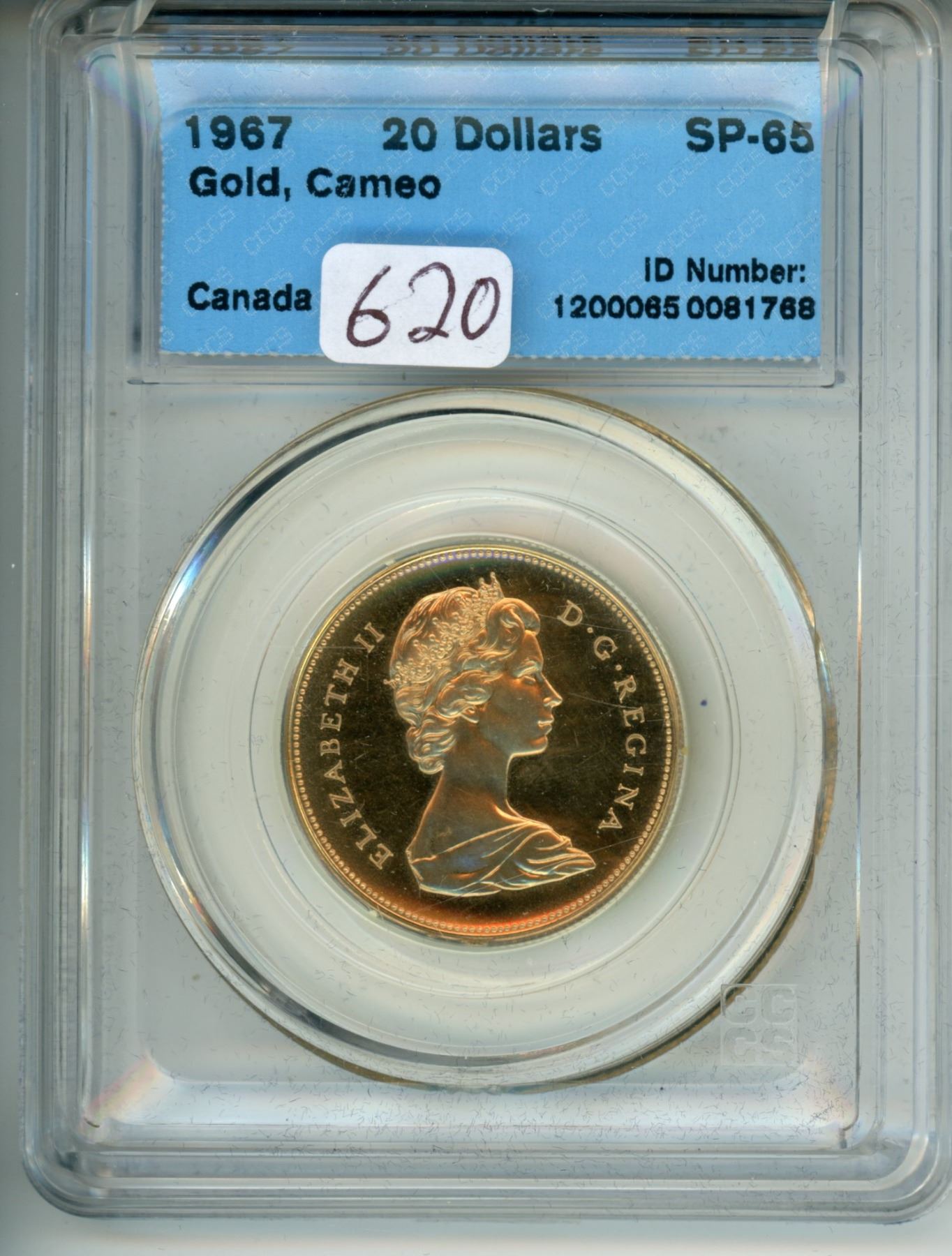 1967 CCCS graded, Canadian Coat of Arms, 20 dollar 21K gold coin - SP65