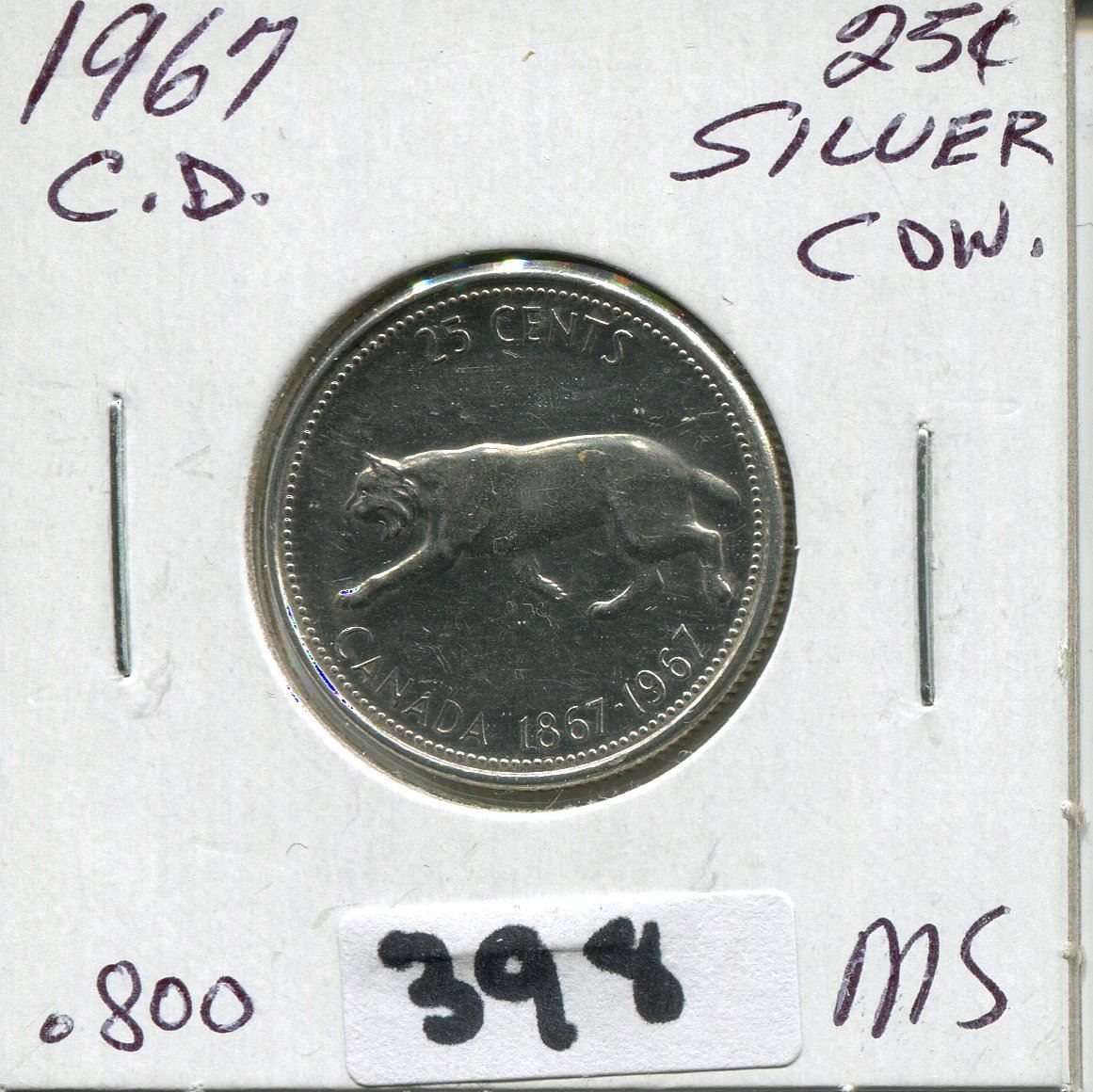 1967 CNDN CONFEDERATION CENTENNIAL SILVER QUARTER QUEEN ROTATED 15°