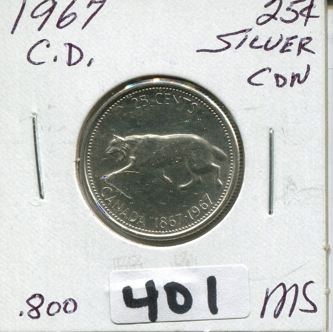 1967 CNDN CONFEDERATION CENTENNIAL SILVER QUARTER QUEEN ROTATED 15°
