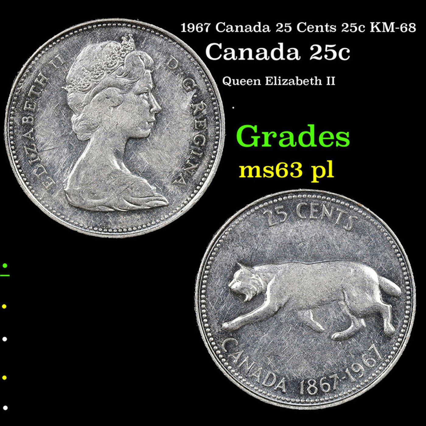 1967 Canada 25 Cents 25c KM-68 Grades Select Unc PL. Elizabeth was born in Mayfair, London, as the first child of the Duke and Duchess of York (later King George VI and Queen Elizabeth). Her father acceded to the throne in 1936 upon the abdication of his brother, King Edward VIII, making Elizabeth the heir presumptive. She was educated privately at home and began to undertake public duties during the Second World War, serving in the Auxiliary Territorial Service. In November 1947, she married Philip Mountbatten, a former prince of Greece and Denmark, and their marriage lasted 73 years until Philip's death in 2021. They had four children: Charles, Prince of Wales; Anne, Princess Royal; Prince Andrew, Duke of York; and Prince Edward, Earl of Wessex.When her father died in February 1952, Elizabeth—then 25 years old—became queen regnant of seven independent Commonwealth countries: the United Kingdom, Canada, Australia, New Zealand, South Africa, Pakistan, and Ceylon, as well as Head of the Commonwealth. Elizabeth has reigned as a constitutional monarch through major political changes such as the Troubles in Northern Ireland, devolution in the United Kingdom, the decolonisation of Africa, and the United Kingdom's accession to the European Communities and withdrawal from the European Union. The number of her realms has varied over time as territories have gained independence, and as some realms have become republics. Her many historic visits and meetings include state visits to the People's Republic of China in 1986, the Russian Federation in 1994, the Republic of Ireland in 2011, and visits to or from five popes.Significant events have included Elizabeth's coronation in 1953 and the celebrations of her Silver, Golden, Diamond and Platinum jubilees in 1977, 2002, 2012, and 2022, respectively. Elizabeth is the longest-lived and longest-reigning British monarch, the oldest and longest-serving incumbent head of state, and the second-longest reigning sovereign monarch in world history. She has faced occasional republican sentiment and press criticism of the royal family, particularly after the breakdown of her children's marriages, her annus horribilis in 1992, and the death in 1997 of her former daughter-in-law Diana, Princess of Wales. However, support for the monarchy in the United Kingdom has been and remains high, as does her personal popularity. Elizabeth died aged 96 at Balmoral Castle, Aberdeenshire, and was succeeded by her eldest son, Charles III.