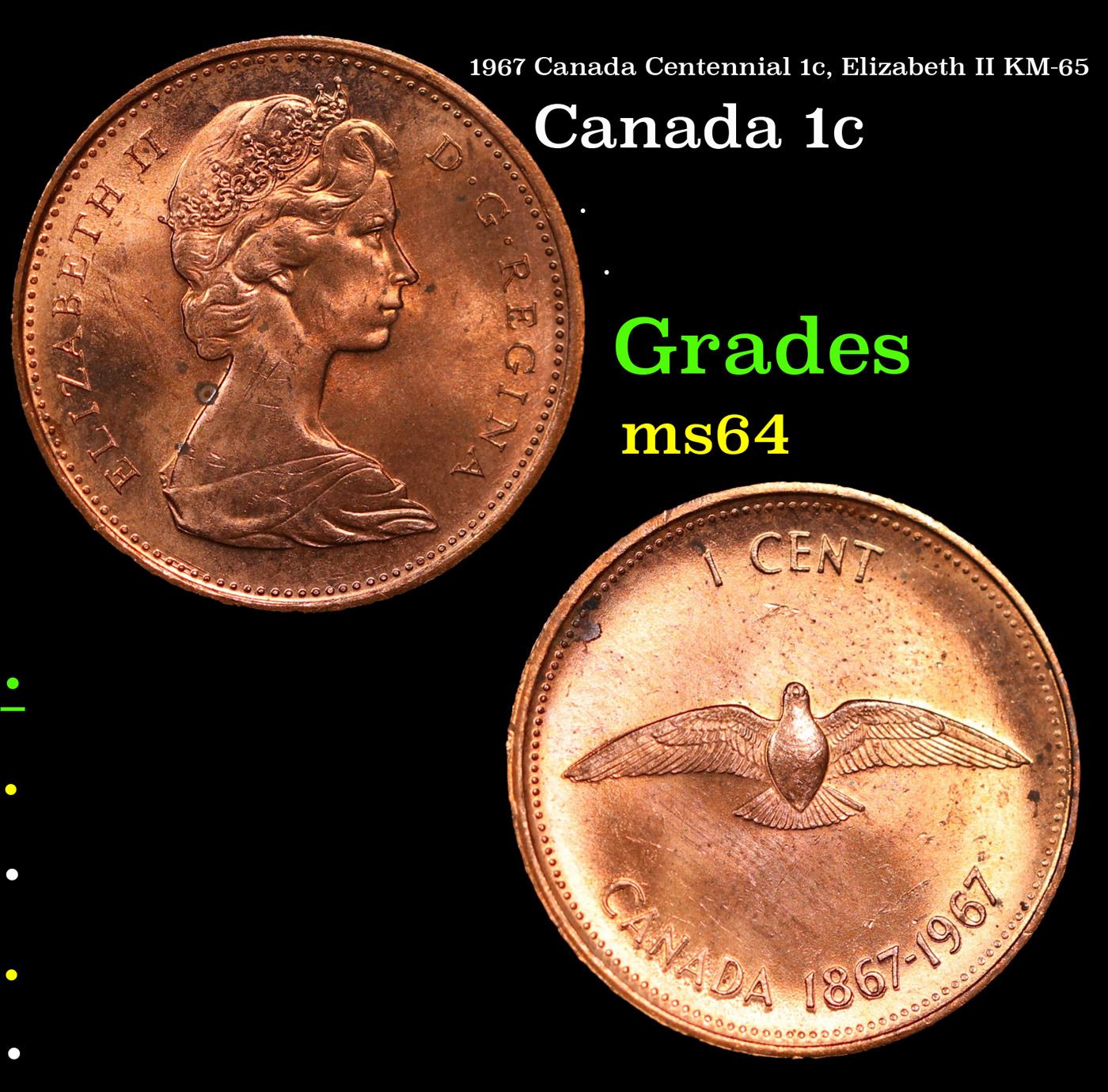 1967 Canada Centennial 1c, Elizabeth II KM-65 Grades Choice Unc