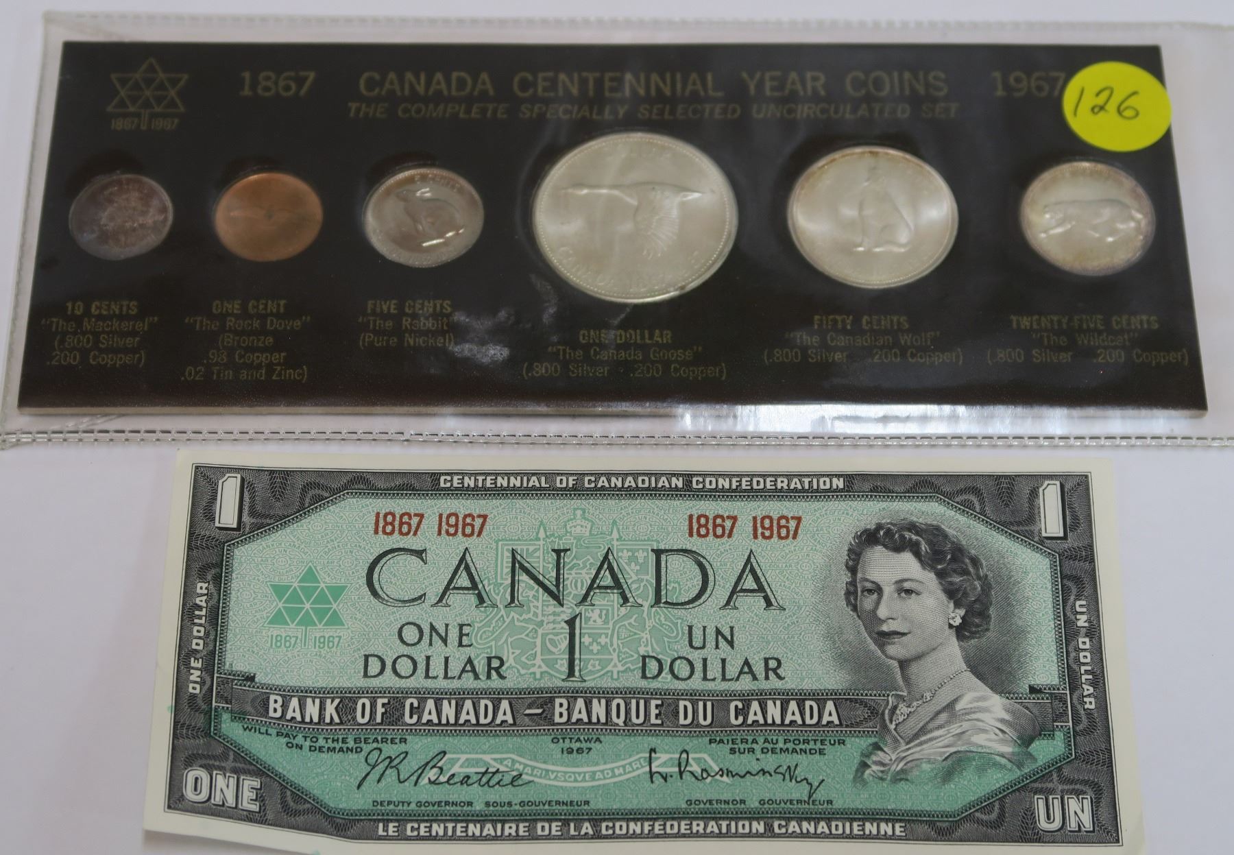1967 Canada Centennial 6-Coin Set & $1 Note