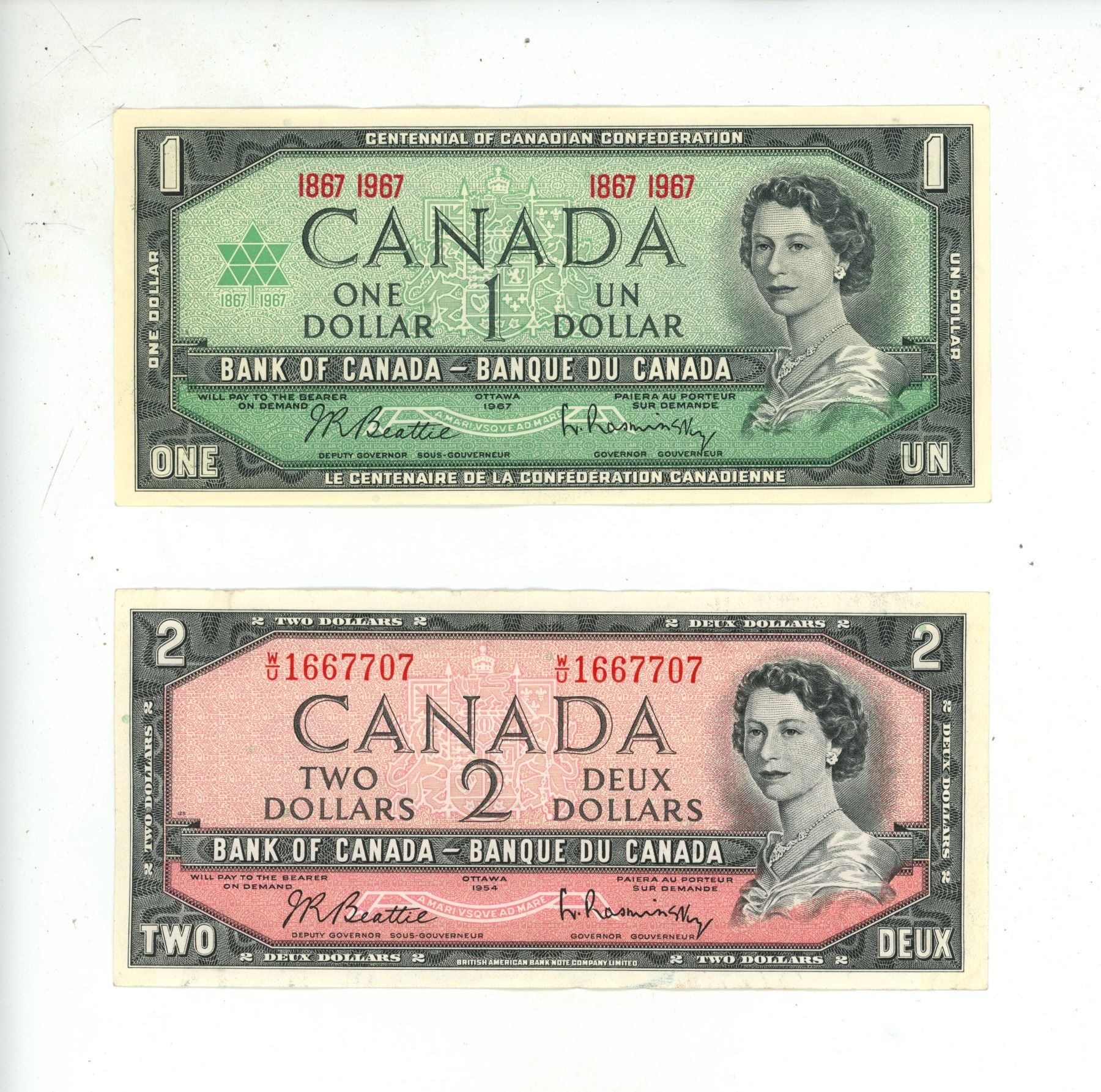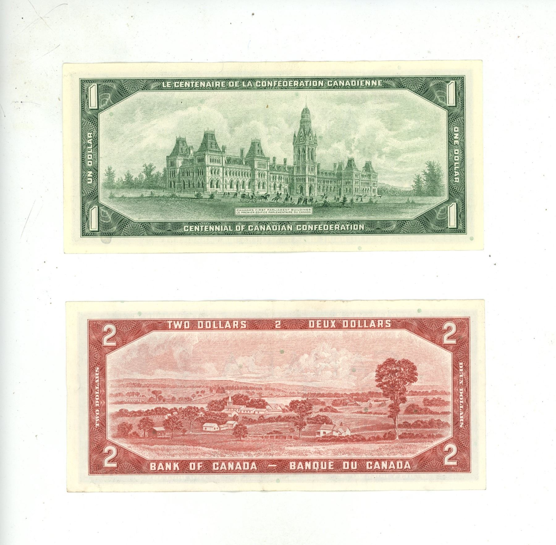 1967 Canada One Dollar and 1954 Canada Two Dollar.