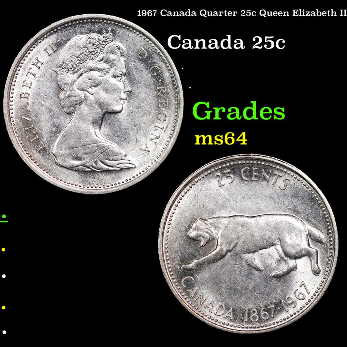 1967 Canada Quarter 25c Queen Elizabeth II Grades Choice Unc.