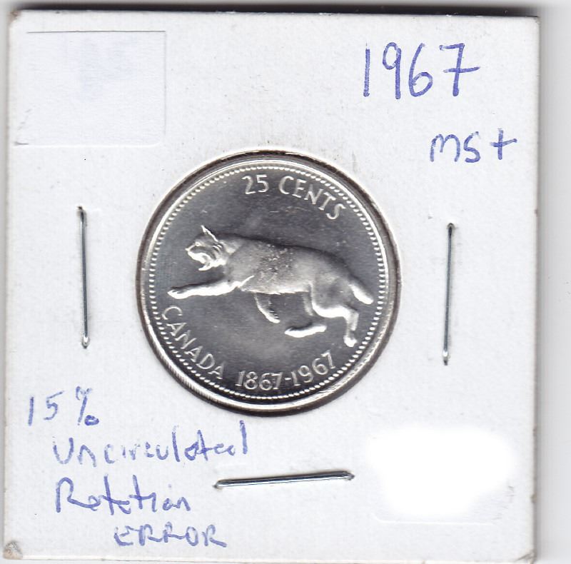 1967 Canadian Silver 25-Cent Quarter Coin - 15% Die Rotation Error - Trends Value $35