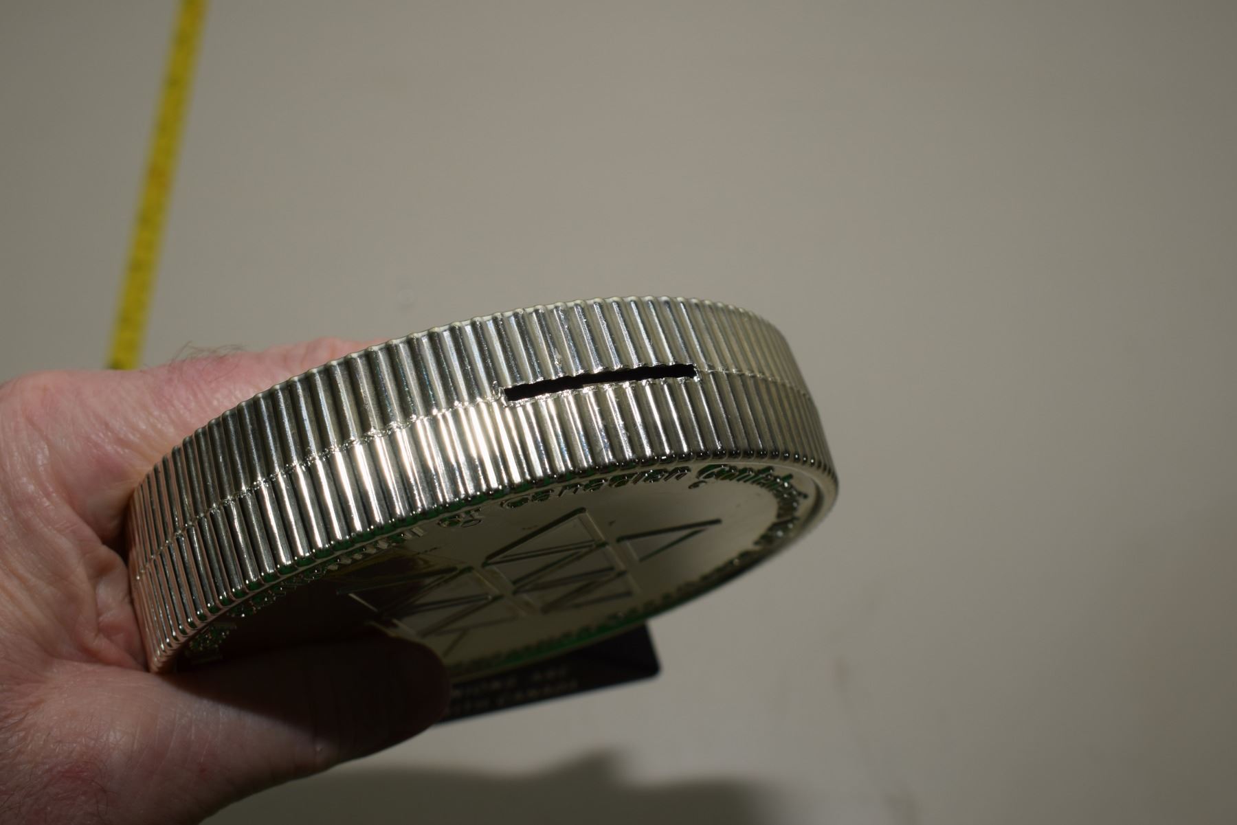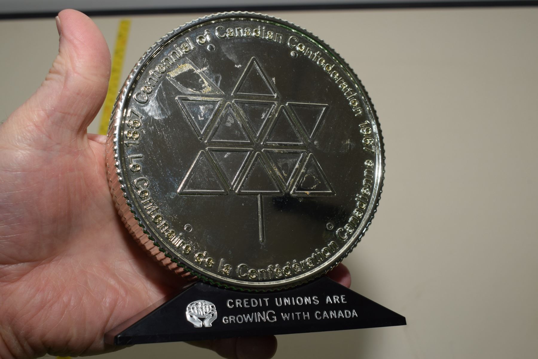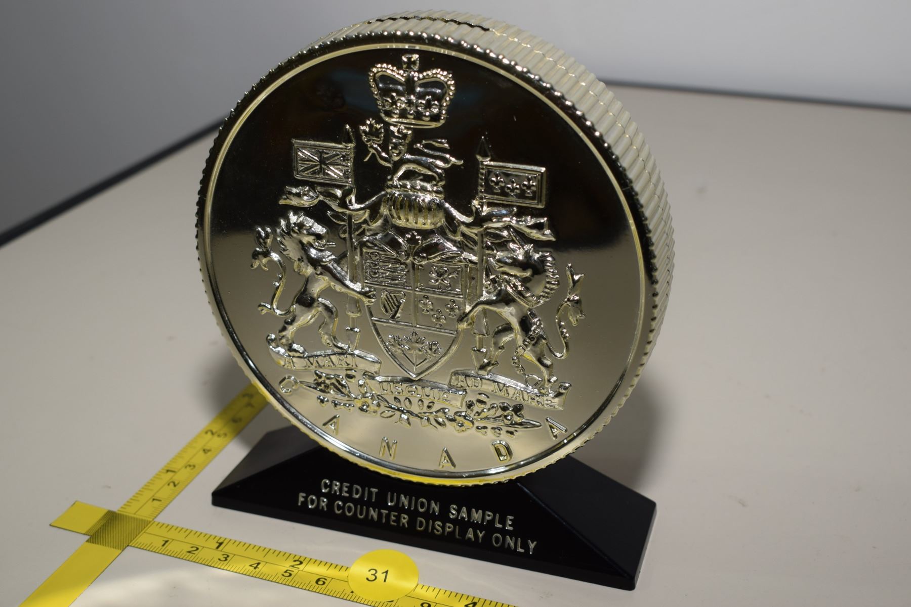 1967 Canada coin bank - Credit Union, has at least one coin inside, no key