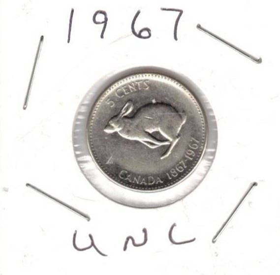 1967 Canadian Centennial nickel - Rabbit, MINT