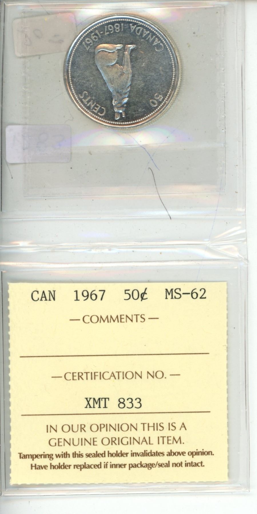 1967 Canadian Fifty Cent - ICCS Graded - MS62