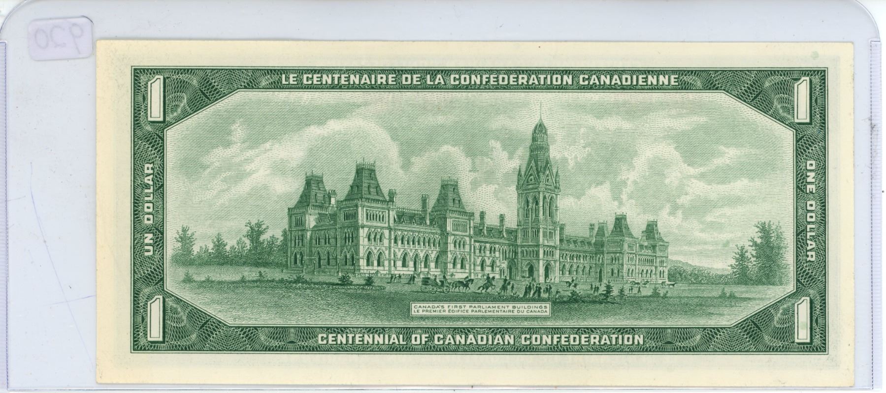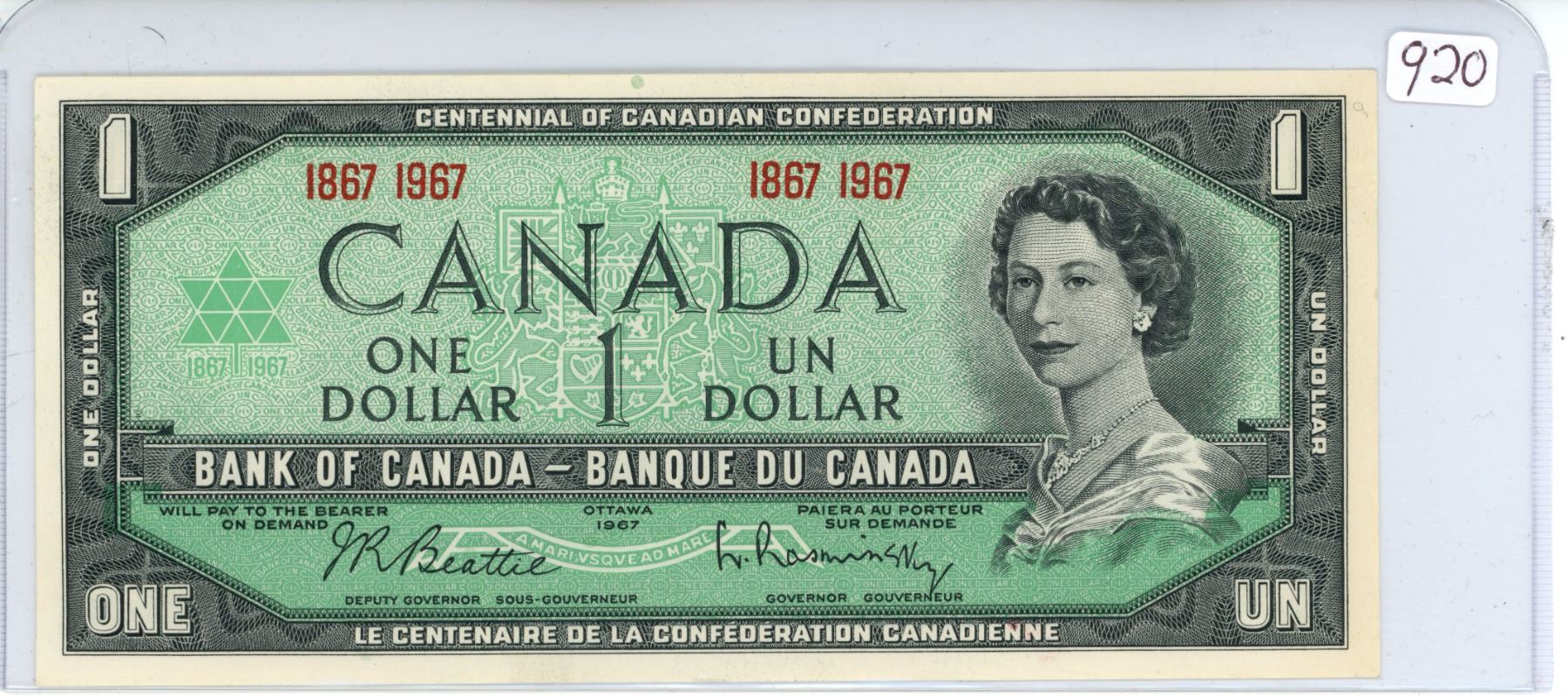 1967 Canadian centennial 1 dollar bill - Beattie/Rasminsky - No Serial # - UNC