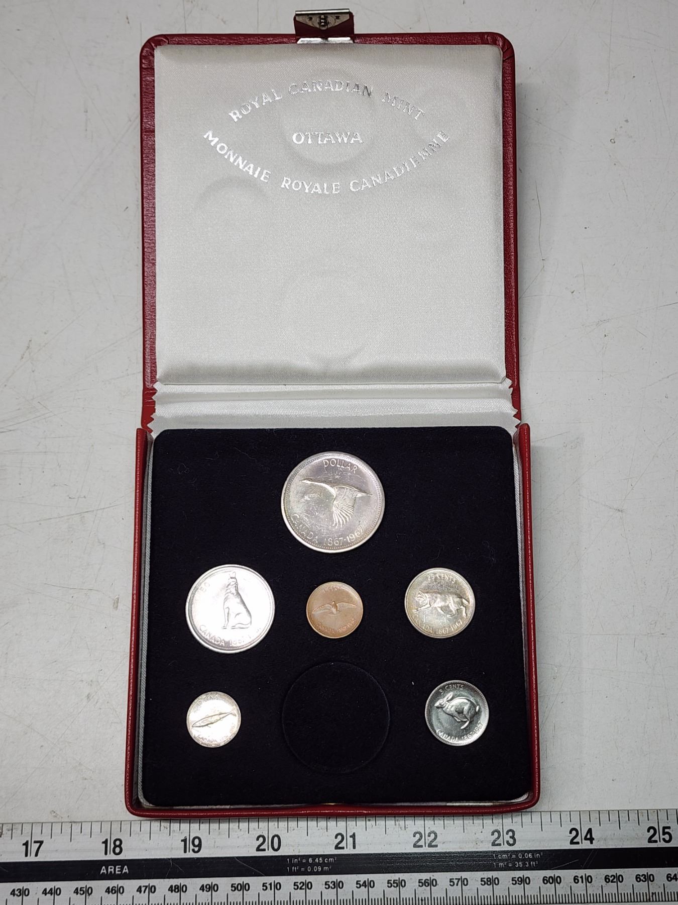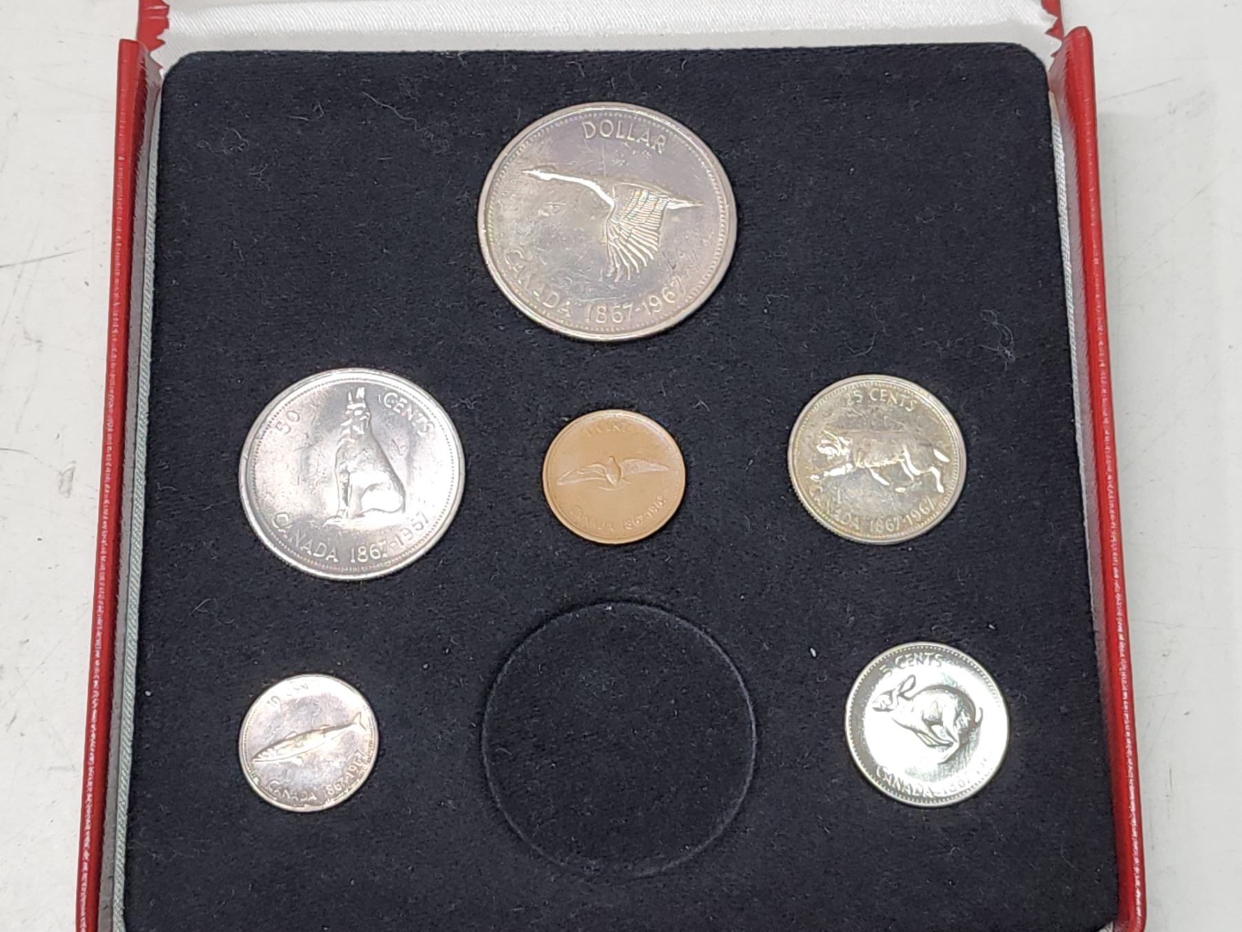 1967 Canadian centennial silver coin set - missing 1 coin - in case